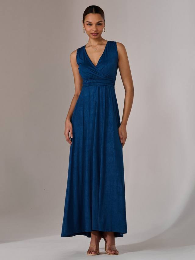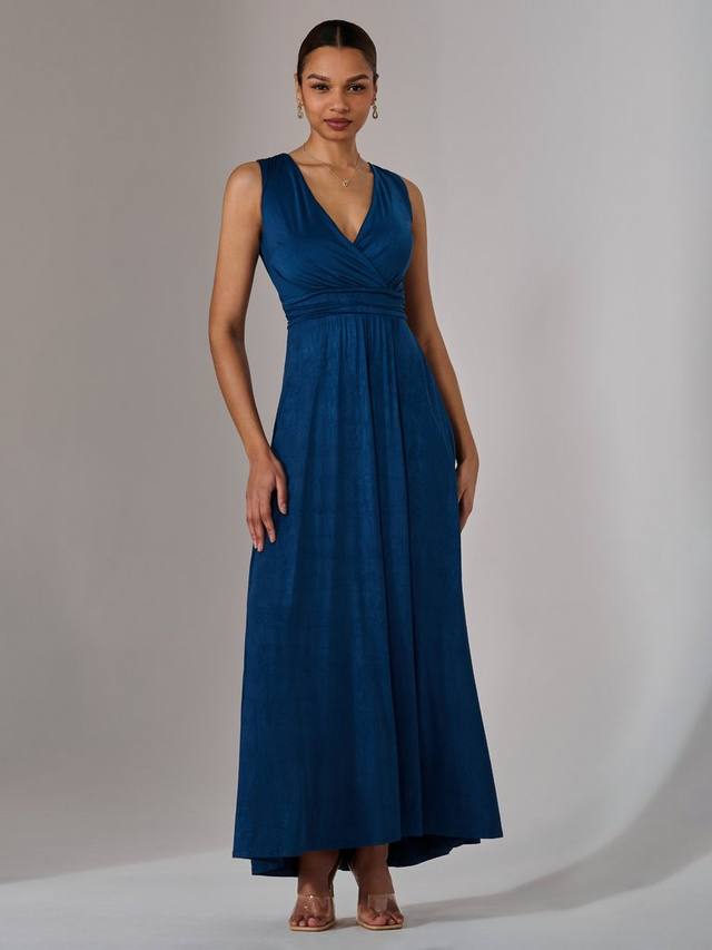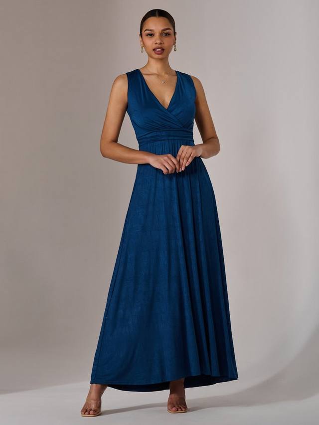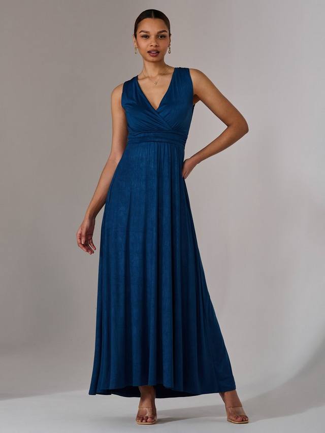 Тенденции приходят и уходят, но А-силуэт остается навсегда. Это макси-платье без рукавов от Jolie Moi с V-образным вырезом и универсальным простым дизайном.
