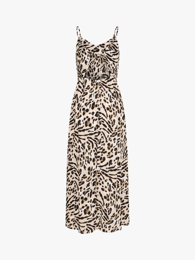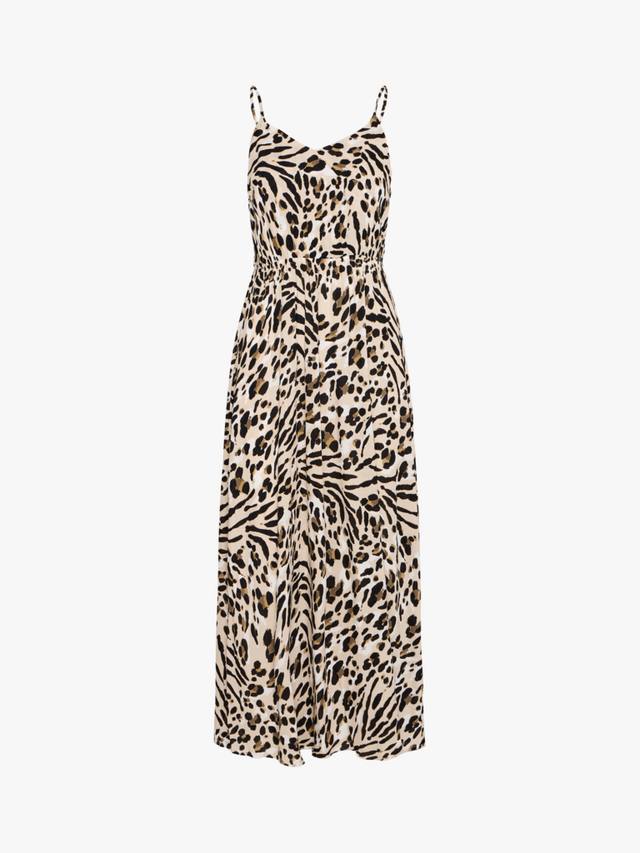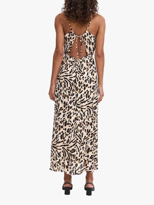Это макси-платье от ICHI, выполненное в непринужденном А-силуэте, выполнено из мягкой вискозы с леопардовым принтом по всей поверхности. Благодаря V-образному вырезу, это платье станет отличным вариантом для пляжного отдыха летом.