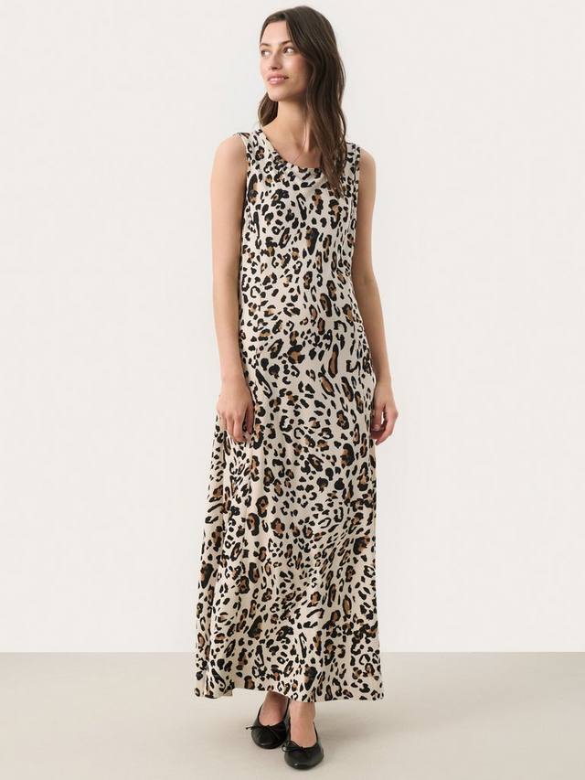 Элегантное и в то же время смелое, платье Thelma с леопардовым принтом идеально подходит для вечернего выхода или особого случая, предлагая комфорт благодаря классическому крою и отсутствию рукавов.