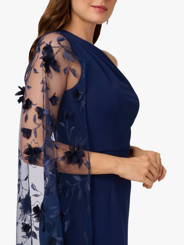 Это платье на одно плечо воплощает классическую элегантность вечернего образа с изюминкой. Креповая ткань скроена в классическом, элегантном прямоугольном силуэте со сборками вдоль бретельки. Один разрезной рукав длиной до пола из прозрачной ткани придает силуэту эффектный вид, а объемные цветочные аппликации добавляют мягкую текстуру. Идеально подходит для эффектного выхода в свет, в этом шедевре вечернего платья вы привлечете всеобщее внимание на вашем следующем официальном мероприятии.