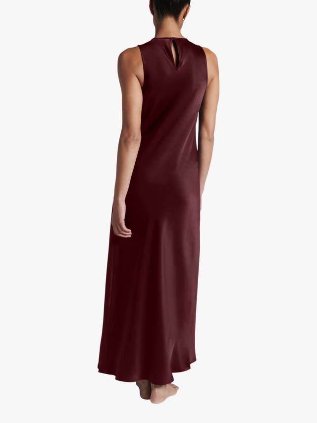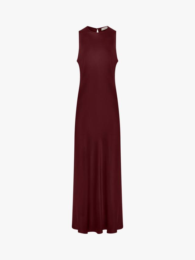 Вневременный силуэт косого кроя с высоким воротом и макси-длинной юбкой, выполненный из роскошного плотного шелкового атласа. Идеальное базовое платье, которое можно носить как многослойный городской образ в межсезонье, так и в отпуске.