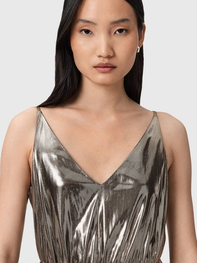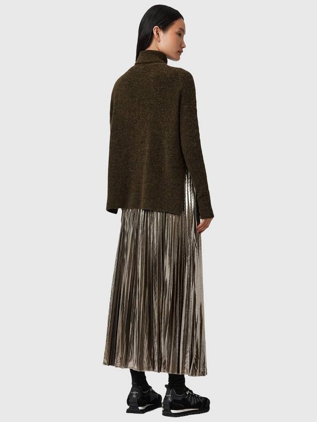 Легкое и теплое, с элегантными линиями и мерцающим блеском. Это платье макси свободного кроя с водолазкой и длинными рукавами обеспечит комфорт на весь день. Стильное и практичное, идеально подходит для тех случаев, когда вы хотите чувствовать себя на высоте.