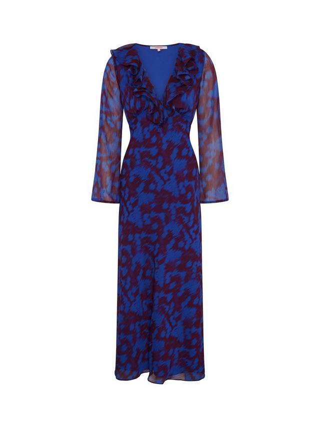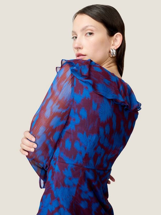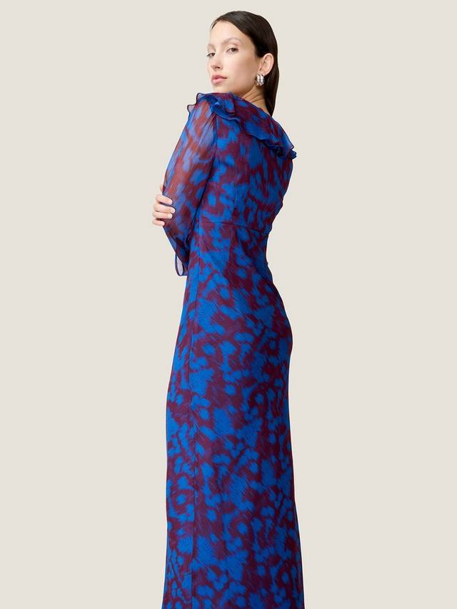 Это шифоновое платье-футляр макси с V-образным вырезом и слегка расклешенными длинными рукавами, украшенное ярким цветочным абстрактным узором, идеально подходит для любого вечера или свадебного торжества. Удобный крой для самых важных моментов.