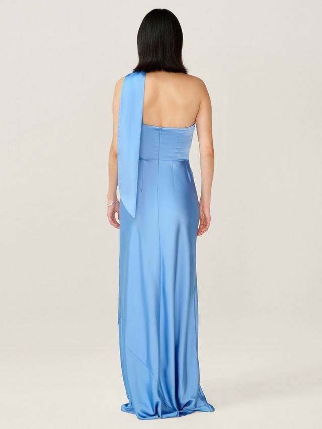 Brioni — эффектное макси-платье с непринужденной элегантностью. Платье с одним плечом и пришитым шарфом, который можно драпировать или завязывать по вашему желанию, выглядит современно и непринужденно. Отличный вариант для вечеринок или когда дресс-код требует чего-то более драматичного.