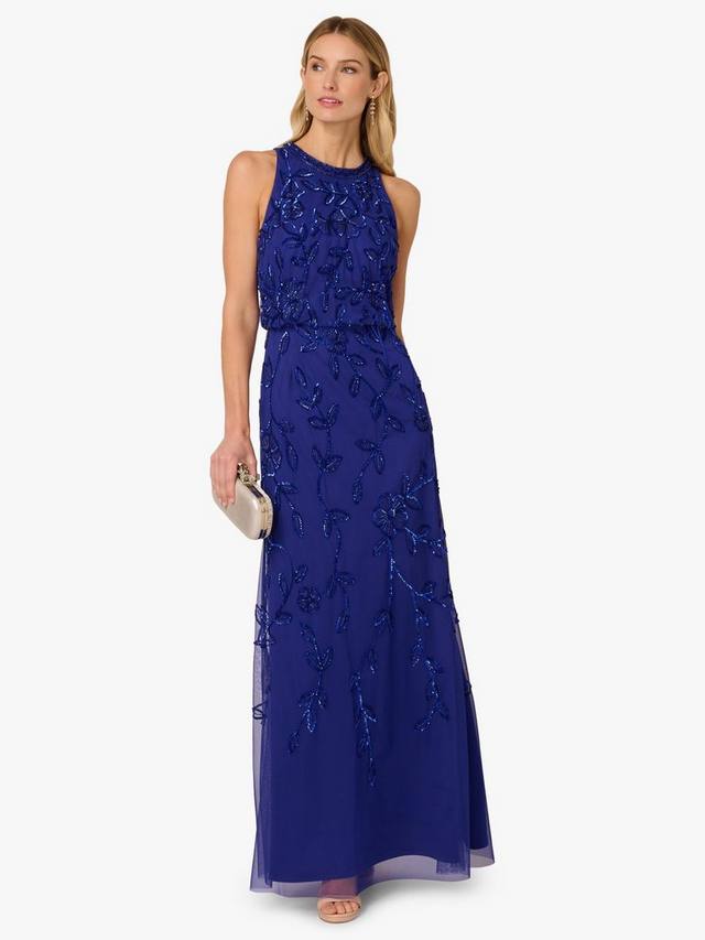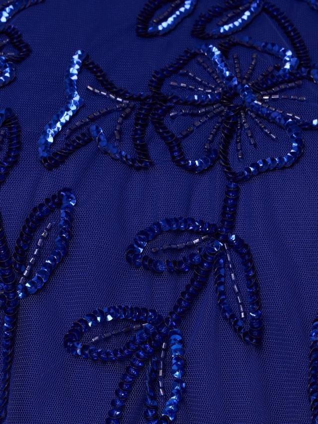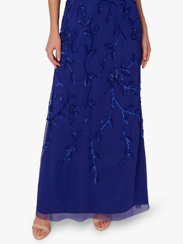 В сочетании с каблуками телесного цвета и металлическими аксессуарами это красиво расшитое бисером платье станет великолепным выбором для официальных мероприятий и дресс-кодов black tie.