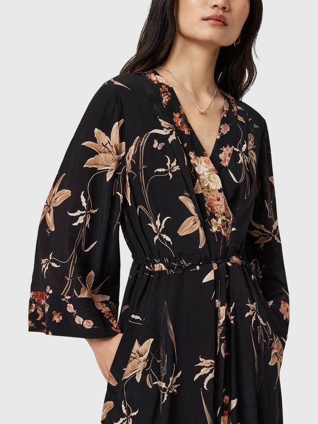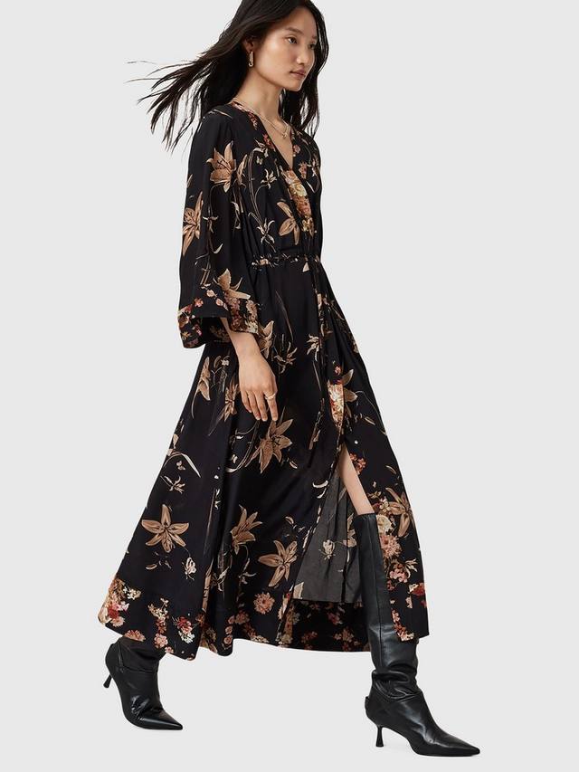 Выразите свою индивидуальность и наслаждайтесь комфортом в течение всего дня в этом цветочном макси А-силуэта. Изысканные детали и игривый V-образный вырез подчеркнут любую фигуру, а рукава три четверти сделают его идеальным для любого случая, от неформальных встреч до больших праздников.