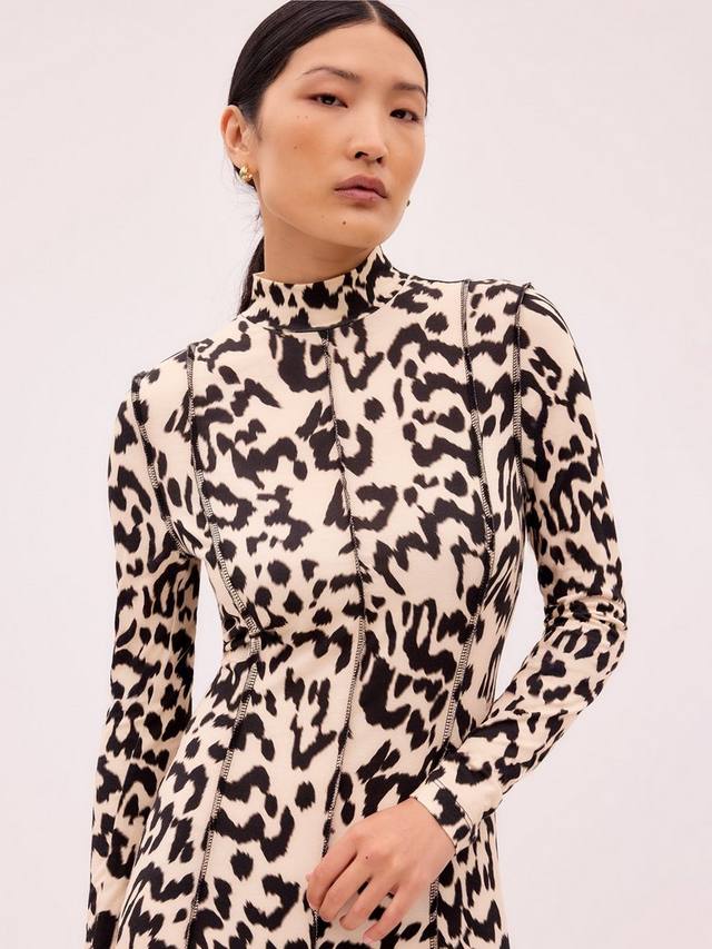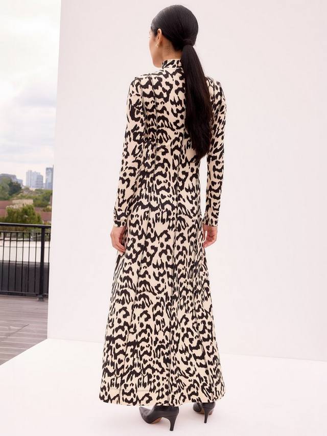 Это длинное платье от Ro&Zo с длинными рукавами отличается высоким воротом и привлекательным анималистичным принтом.