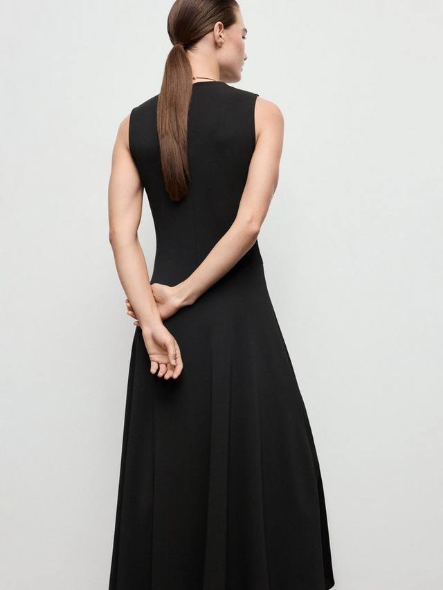Это макси-платье сочетает в себе продуманный дизайн и повседневную практичность благодаря плиссированному А-силуэту и круглому вырезу. Высокая спинка обеспечивает комфорт, делая его идеальным вариантом для работы или выхода в свет, когда вы хотите выделиться.