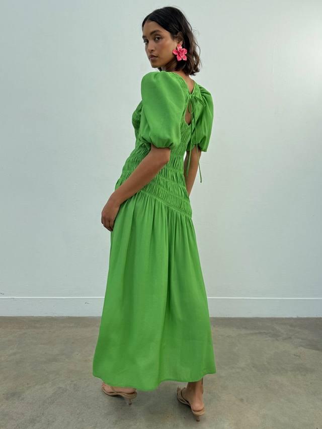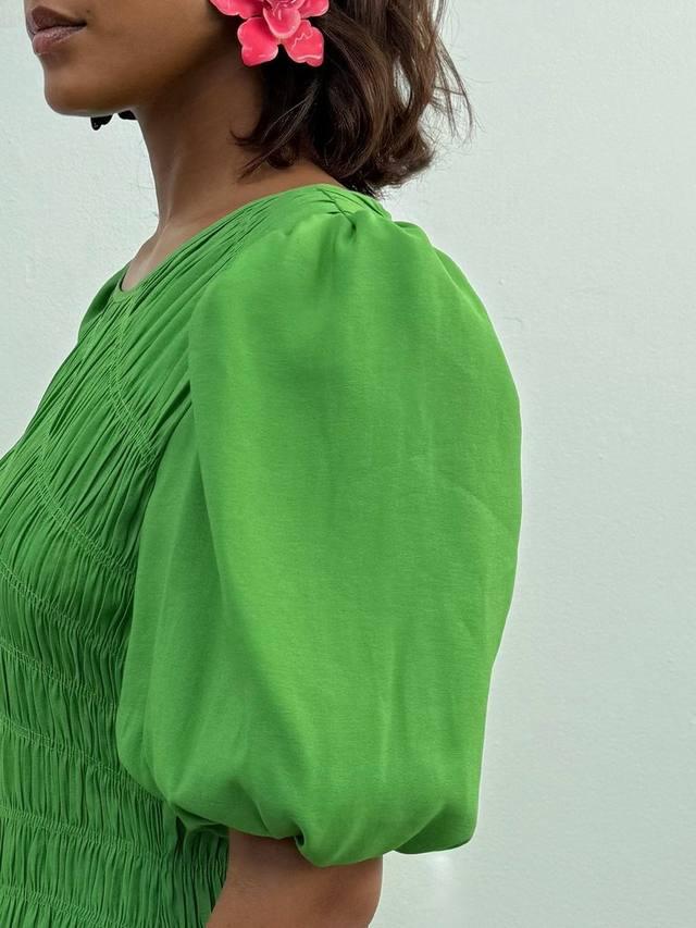 Это платье из красивой, лёгкой ткани гармонично сочетает в себе комфорт и стиль. Присборенный перед переходит в великолепную плиссированную юбку.