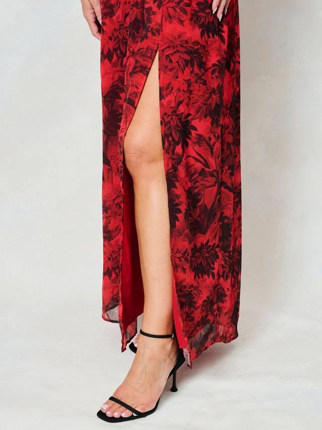 Это шикарное платье макси-силуэта украшено вручную напечатанным принтом с прекрасными цветами и листвой.
