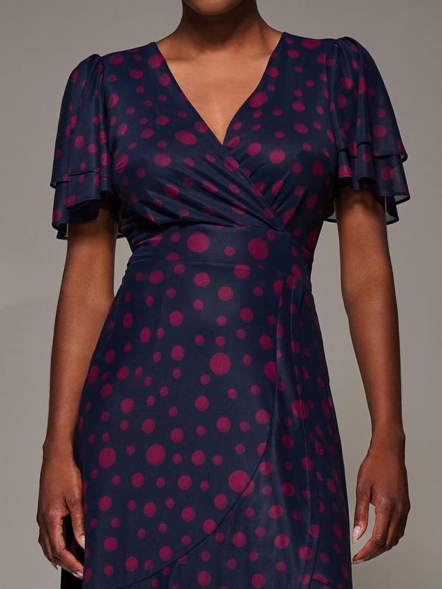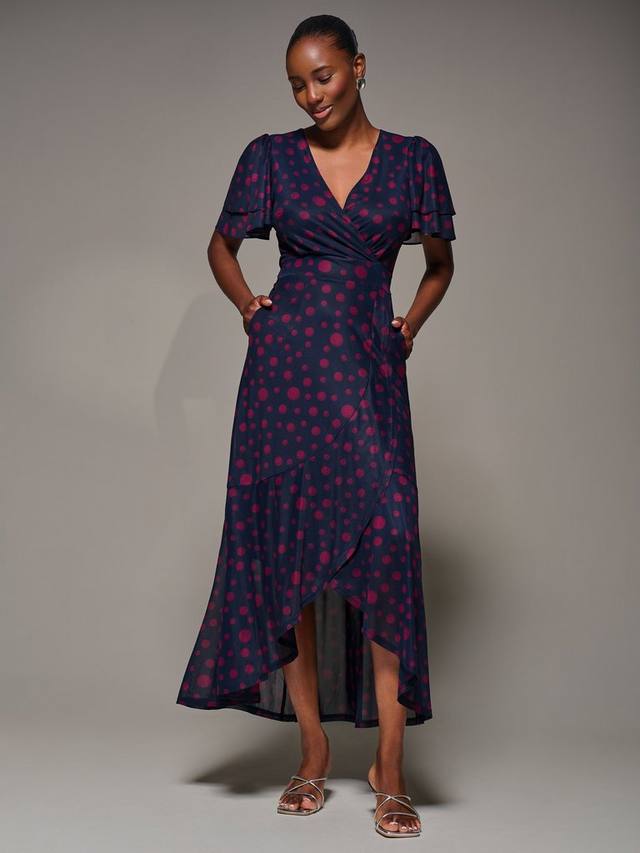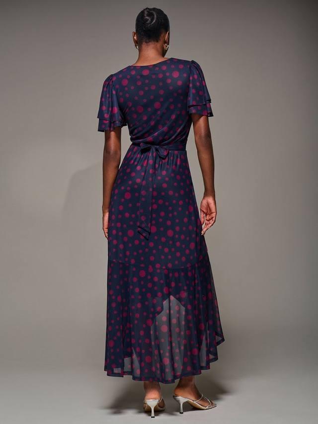 Платье макси с сетчатыми оборками от Jolie Moi имеет переднюю часть с запахом и привлекательным V-образным вырезом и выполнено из мягкой сетчатой ткани. Полностью на подкладке для комфорта, она демонстрирует двухслойные короткие рукава-ангелы и определенный пояс с изящной оборкой, которая элегантно ниспадает к асимметричному подолу.
