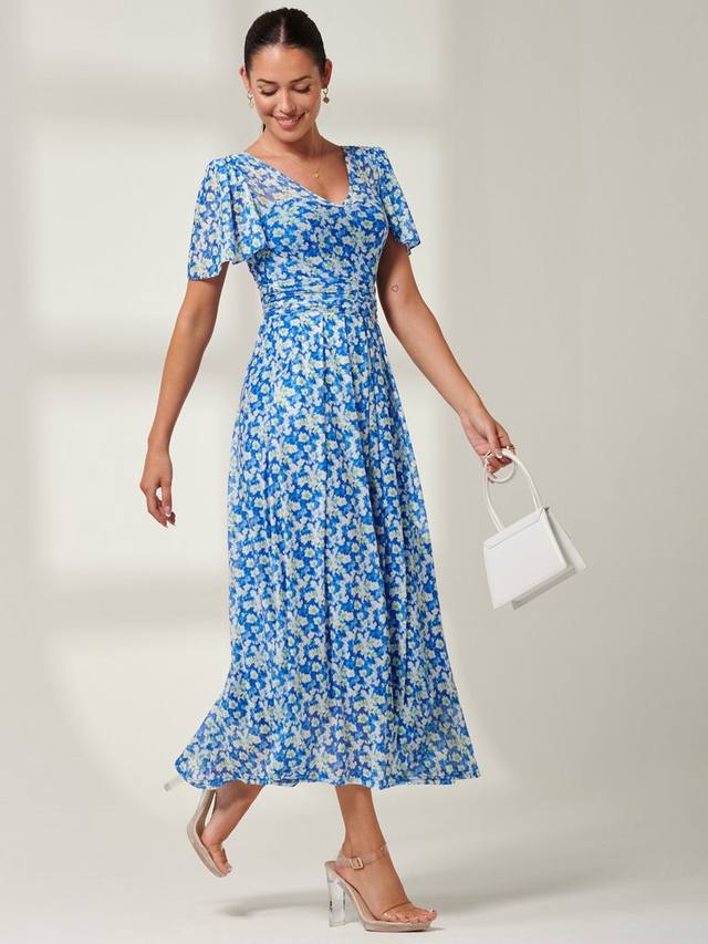 Выберите женственный шарм с плиссированным сетчатым платьем макси Bianca от Jolie Moi. Платье дополнено очаровательным цветочным принтом, V-образным вырезом, короткими рукавами-ангелом и плиссированным подолом. Эластичный пояс со сборками для облегающего силуэта и два боковых кармана.