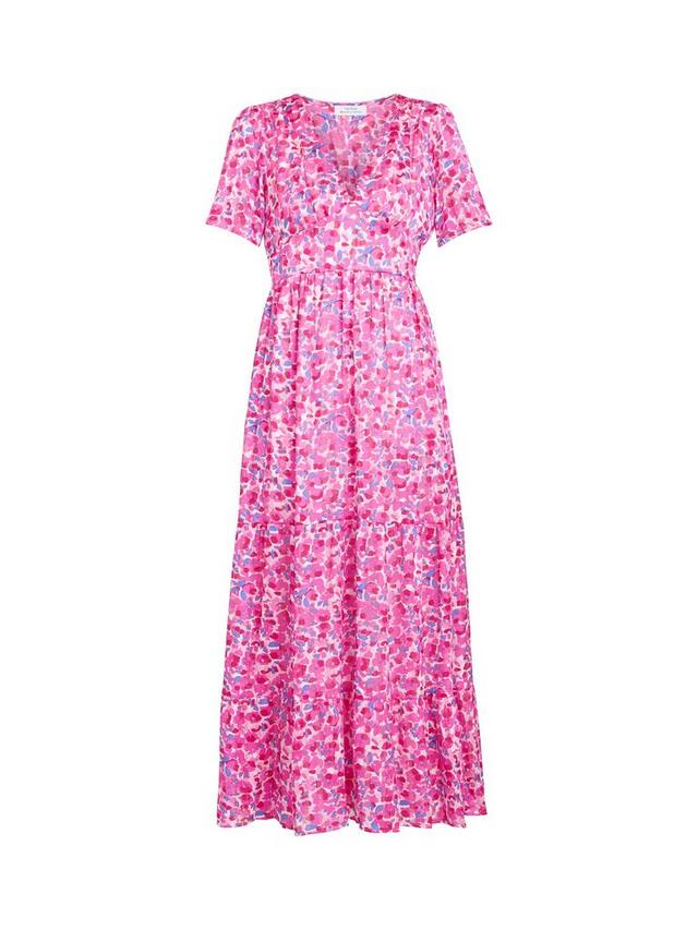 Это яркое и игривое макси-платье с цветочным принтом выполнено из нежного шифона с металлической нитью. Платье дополнено эластичным прозрачным поясом сзади для удобства посадки и дополнительного комфорта.