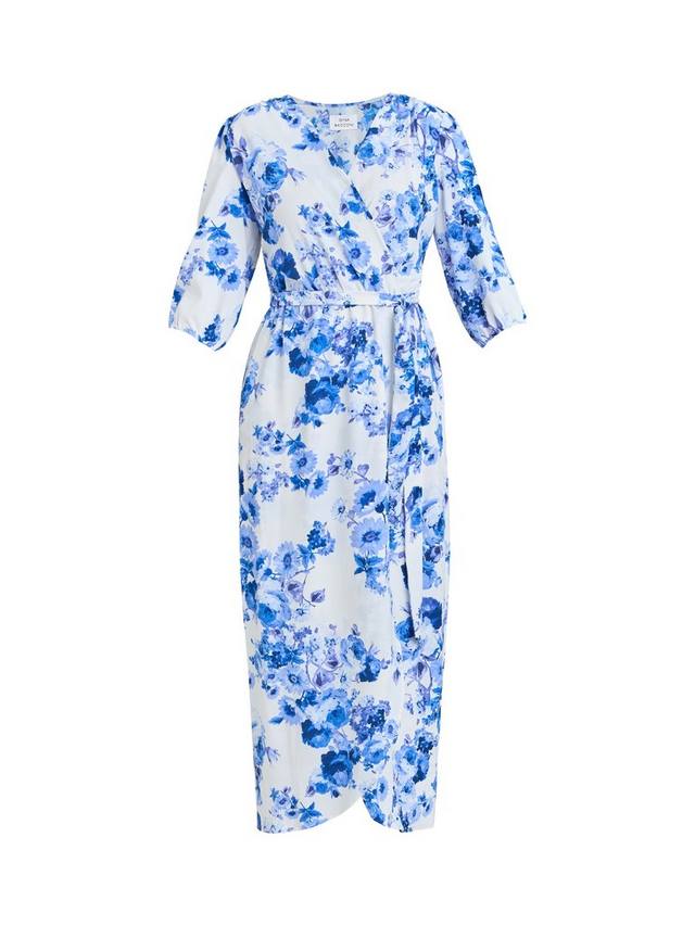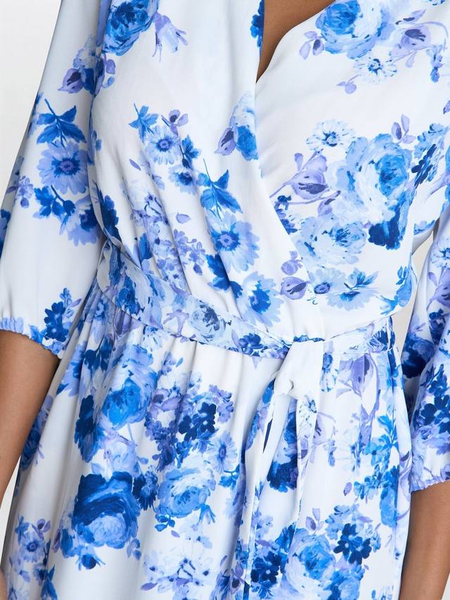 Создайте непринужденный образ в макси-платье Karen с цветочным принтом. Это потрясающее изделие украшено нежными цветочными мотивами, создающими ощущение свежести и лета. Платье имеет облегающий лиф-обертку с V-образным вырезом, красивые рукава-буфы до локтя и пояс на завязке, который подчеркивает талию, создавая изящный силуэт.