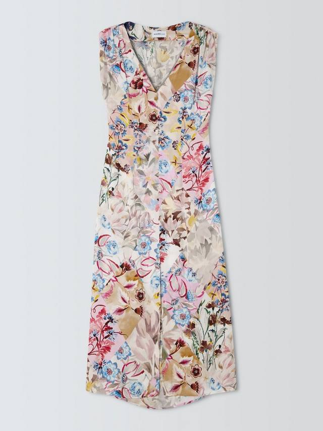 Платье макси от Marella переосмысливает дневную элегантность, сочетая яркий цветочный узор с непринужденно струящимся А-образным кроем. Легкая вискозная ткань и V-образный вырез создают комфорт и уверенность, превращая каждую летнюю прогулку в праздник уникального стиля и яркой индивидуальности.
