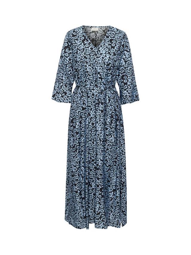 Приталенное макси-платье KAFFE с расклешенным лифом зарядит энергией ваш день благодаря струящемуся силуэту и яркому цветочному принту. Мягкая вискозная ткань обеспечит вам комфорт, а продуманный V-образный вырез и рукава три четверти сделают это платье идеальным выбором на каждый день.