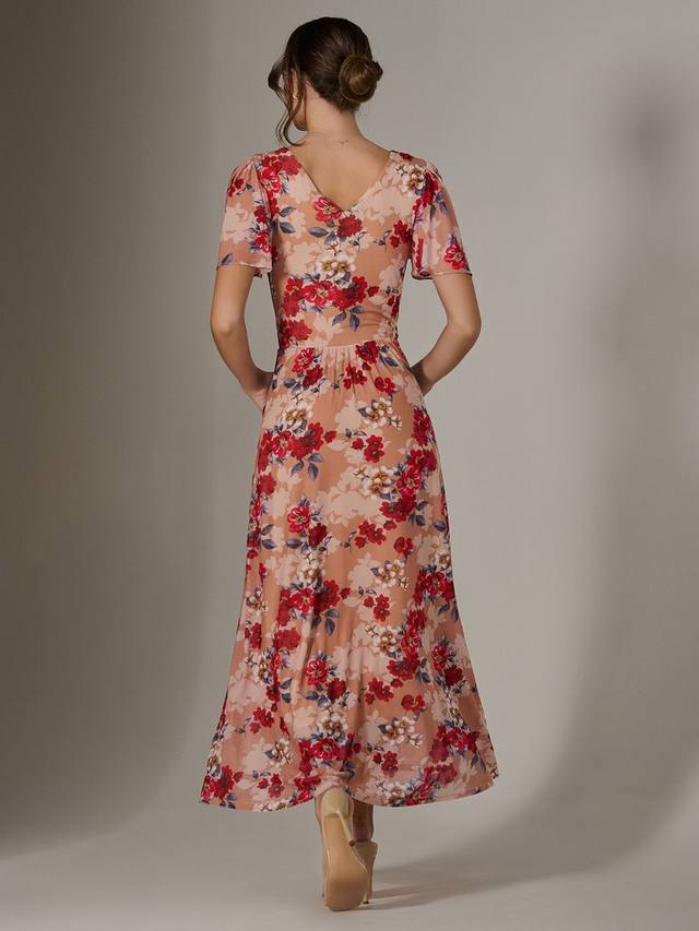 Вспомните классический стиль с помощью облегающего и расклешенного кроя. Это макси-платье с короткими рукавами от Jolie Moi дополнено вырезом-оберткой и цветочным узором.