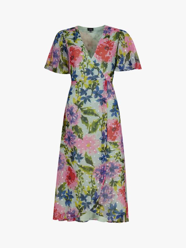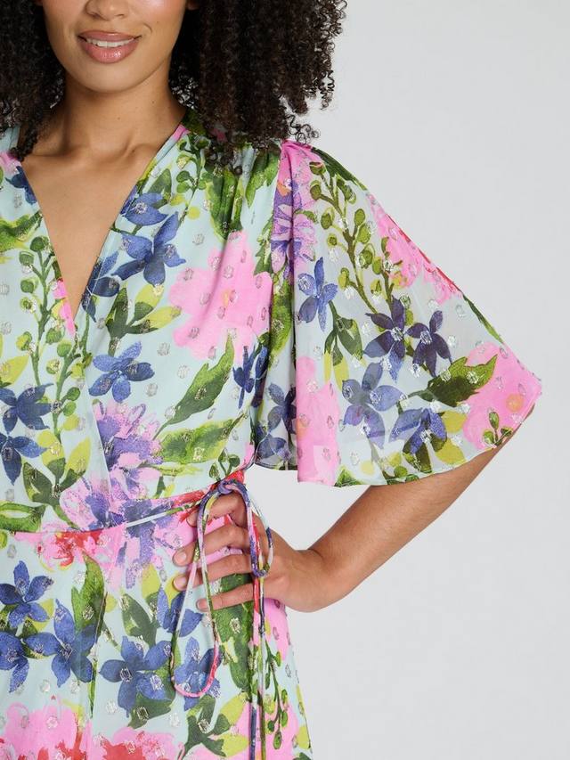 Это макси-платье от South Beach женственного кроя с запахом сшито из смеси тканей. Благодаря лаконичному, но элегантному V-образному вырезу и рукавам до локтя, оно легко очаровывает своим классическим цветочным принтом.