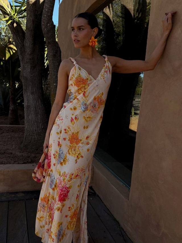 NFD определённо создаёт атмосферу уюта с этим платьем! Нежный цветочный принт и изысканные детали делают его незаменимым нарядом для торжественных случаев или для гостей на свадьбе. Платье сшито из панелей, выкроенных по косой, создаёт великолепный силуэт с красивыми драпировками. Дополнительный разрез сбоку добавляет лёгкий штрих в стиле NFD, делая это платье одновременно сексуальным и изысканным!