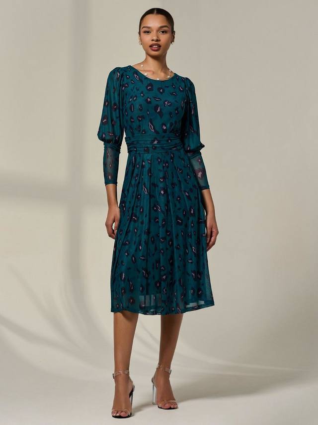 Смелое. Элегантное. Удобное в носке. Платье-мидакси Mesh Puff с длинными рукавами и леопардовым принтом — это сочетание эффектного дизайна и непринужденной изысканности. Платье из мягкой, дышащей сетки с длинными рукавами-буфами и классическим круглым вырезом горловины создаёт утончённый и в то же время игривый образ. Присборенный пояс мягко облегает талию, подчеркивая фигуру, а плиссированная юбка мидакси красиво струится при каждом шаге.