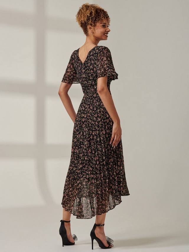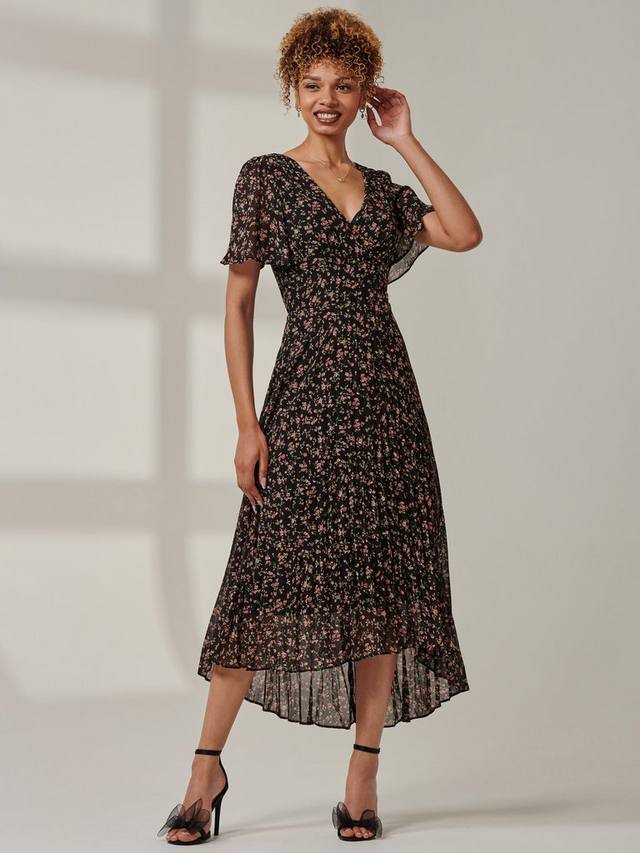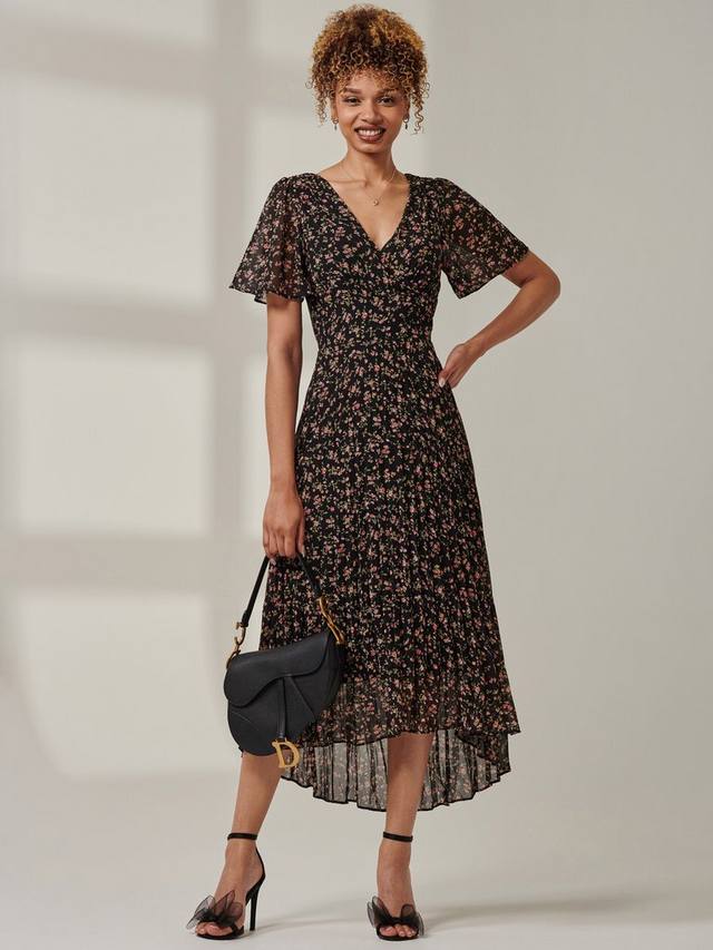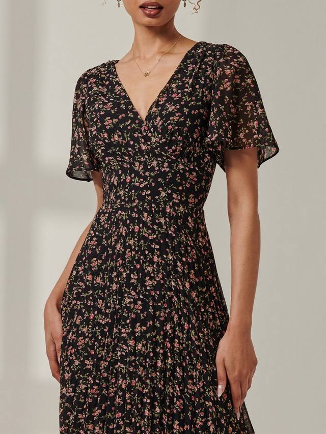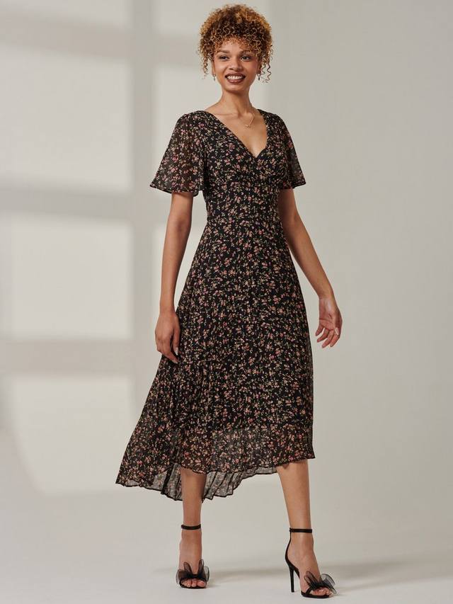Ничто так не подчеркивает фигуру, как облегающий силуэт с расклешенной юбкой. Это платье миди с короткими рукавами от Jolie Moi дополнено V-образным вырезом и цветочным принтом.
