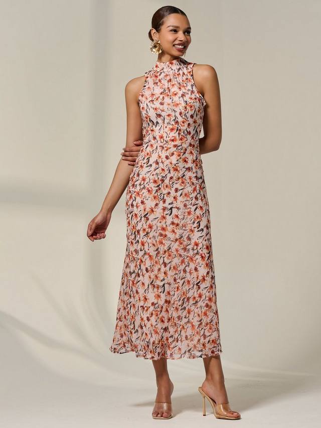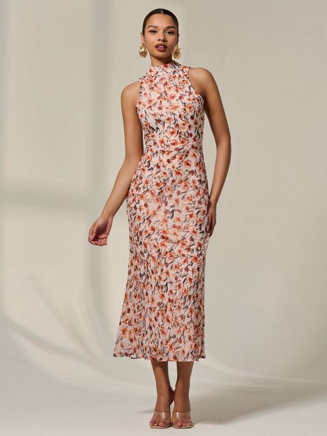 Привлеките всеобщее внимание в этом потрясающем платье Midaxi с принтом от Jolie Moi – идеальном образе для любого летнего случая, когда вы хотите чувствовать себя безупречной красавицей. Платье украшено красивым цветочным узором с золотыми крапинками, что добавляет ему роскоши. Платье облегает фигуру благодаря расклешенному крою, ниспадающему каскадом до идеальной длины миди-макси. Высокий строгий вырез с изящными складками излучает сдержанную элегантность; однако, детали на спинке, такие как завязка на шее и вырез-капелька, произведут неизгладимое впечатление. Также имеется незаметная молния по центру спинки для удобства.