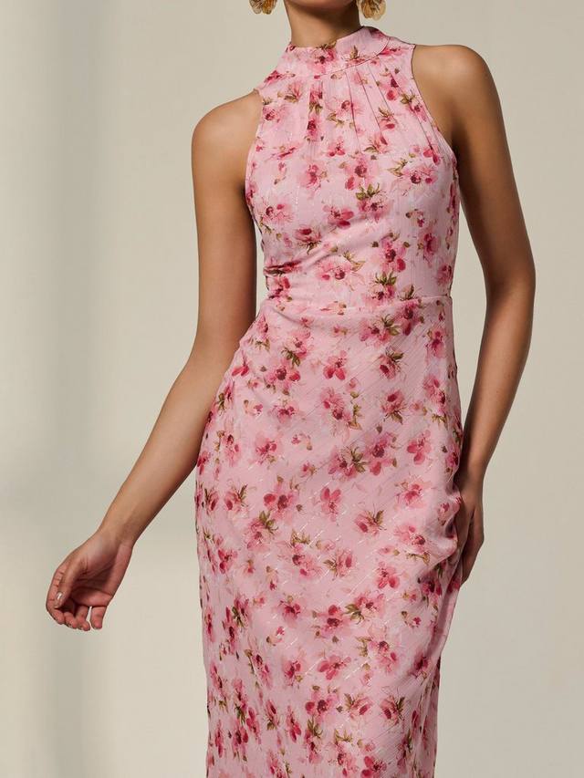 Привлеките всеобщее внимание в этом потрясающем платье Midaxi с принтом от Jolie Moi – идеальном образе для любого летнего случая, когда вы хотите чувствовать себя безупречной красавицей. Красивый цветочный узор с крапом добавляет роскоши, а облегающий крой с расклешенными краями идеально подходит для фигуры, позволяя достичь идеальной длины миди-макси. Высокий строгий вырез с изящными складками излучает сдержанную элегантность; однако, детали на спинке, такие как завязка на шее и вырез-капелька, произведут неизгладимое впечатление. Также имеется незаметная молния по центру спинки для удобства.