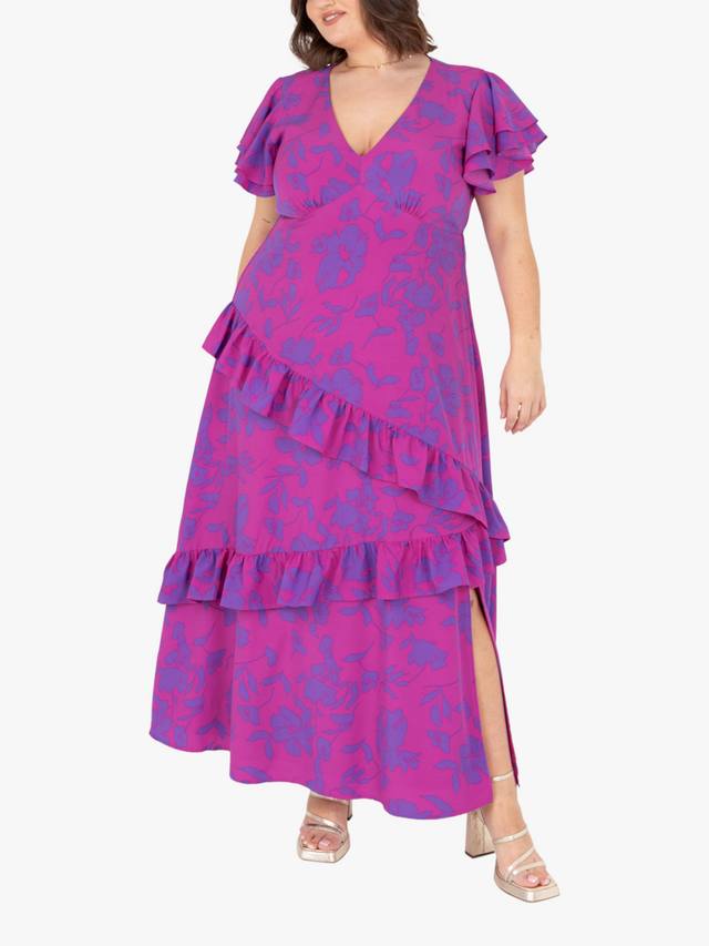 Это яркое и эффектное платье мидакси станет незаменимым аксессуаром для самых памятных случаев. Платье выполнено из лёгкой струящейся ткани, имеет изысканную талию в стиле ампир, элегантный V-образный вырез и короткие рукава-крылышки, что создаёт эффектный образ. Очаровательный цветочный узор на контрастной основе делает его идеальным как для дневных, так и для вечерних мероприятий. Длинная юбка дополнена каскадными асимметричными оборками, которые добавляют объёма и движения. Это платье прекрасно сочетается с туфлями на каблуке с ремешками и сдержанными украшениями.