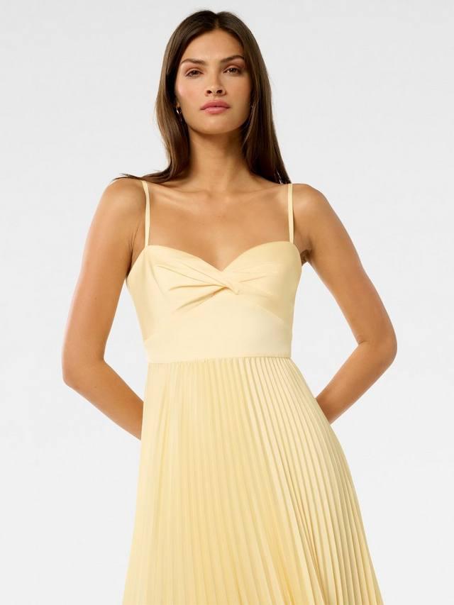 Это платье средней длины от Forever New, облегающее и расклешенное, с плиссировкой, выполнено из лёгкой ткани. Очаровательный вырез в форме сердечка не требует принтов и акцентов, чтобы привлечь к себе внимание.