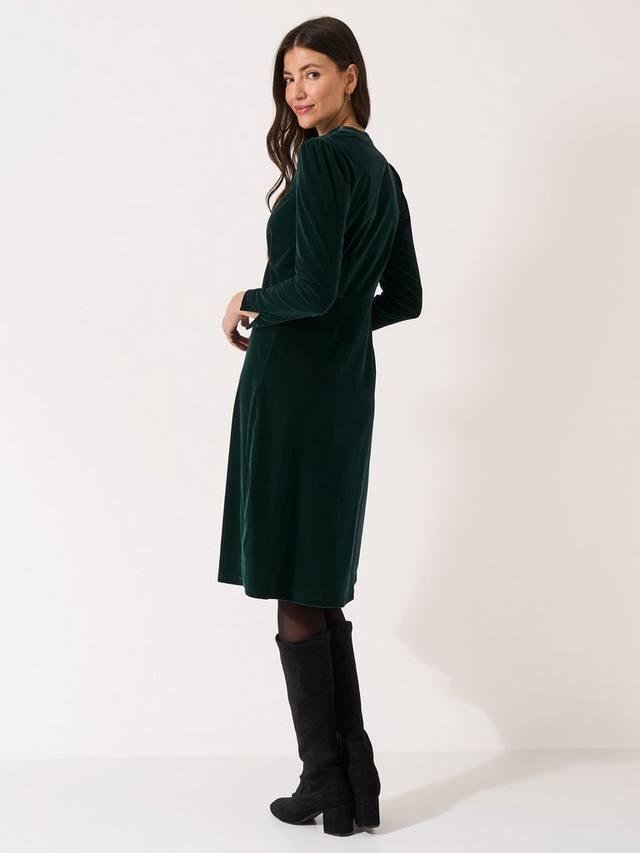 Это платье из невероятно мягкого и приятного бархата идеально подходит для зимы. Оно скроено с добавлением эластичной ткани, дополнено длинными рукавами с лёгкими буфами и закруглённым поясом. Длина миди обеспечивает универсальность – можно носить как с сапогами, так и с каблуками.
