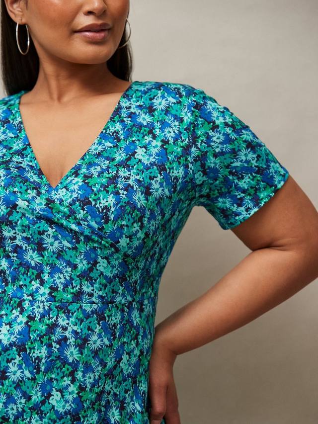 Это платье миди с фиксированным запахом и А-силуэтом, выполненное из мягкой эластичной ткани с игривым цветочным рисунком, обеспечивает идеальную посадку по фигуре. Оно удобно в носке и выглядит стильно без лишних усилий.