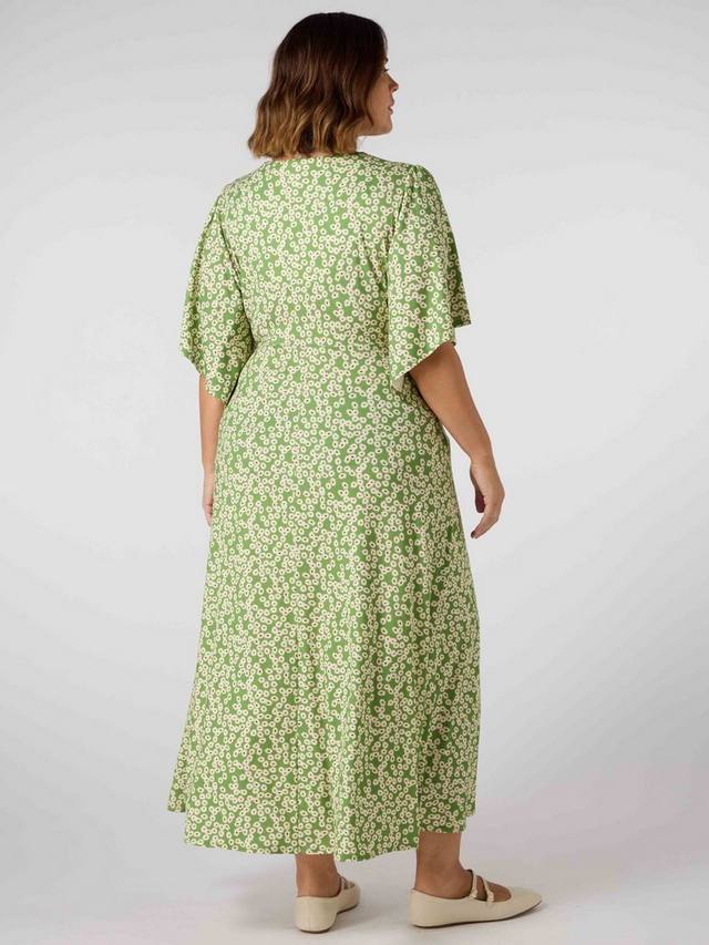 Это платье с красивым меланжевым принтом сшито из мягкого трикотажного полотна, которое невероятно удобно в носке. V-образный вырез, а пришитый крой с запахом добавляет изюминку, делая его таким привлекательным. Длина миди и короткие рукава-крылышки создают великолепный силуэт. Платье легко надевается через голову, создавая элегантный повседневный образ.