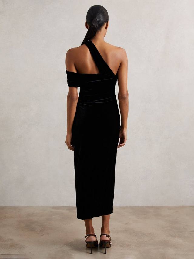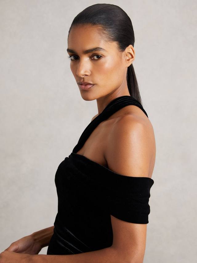 Силуэт-футляр всегда актуален. Это платье миди без рукавов от Reiss отличается асимметричным вырезом, а однотонный цвет позволяет сочетать его с чем угодно.