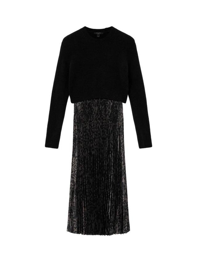 Фирменное платье миди AllSaints 2 в 1. С изящными складками и привлекательным анималистичным рисунком, оно дополнено уютным джемпером. Универсальный дизайн и комфорт позволят вам стильно переходить от напряженного утра к расслабленному вечеру. Носите вместе или по отдельности.