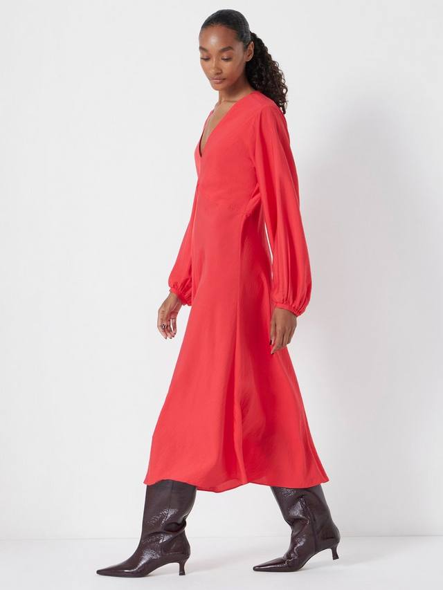 Это платье миди HUSH — универсальный выбор для любого дня. Изготовленное из комфортной смесовой вискозы, оно отличается классическим однотонным кроем и выгодно подчеркивает фигуру А-силуэтом. Платье с V-образным вырезом и длинными рукавами создает классический и элегантный силуэт.