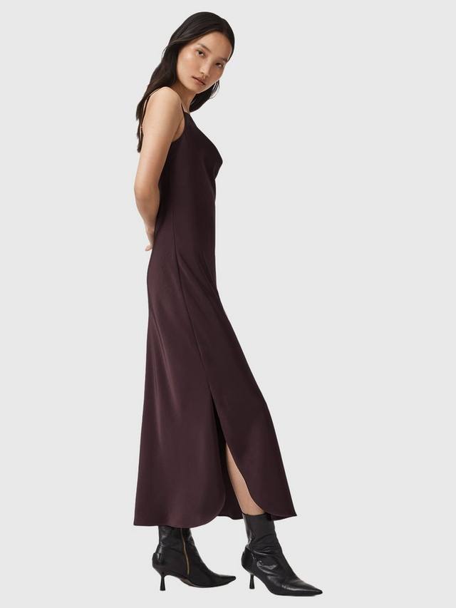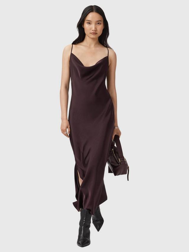 Это атласное платье миди с А-силуэтом и воротником-хомутом легко драпируется. Созданное для вечерних мероприятий, оно приятно на ощупь и обеспечит вам ощущение комфорта и уверенности в себе на протяжении всего вечера.