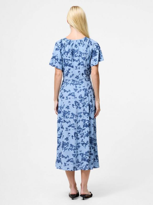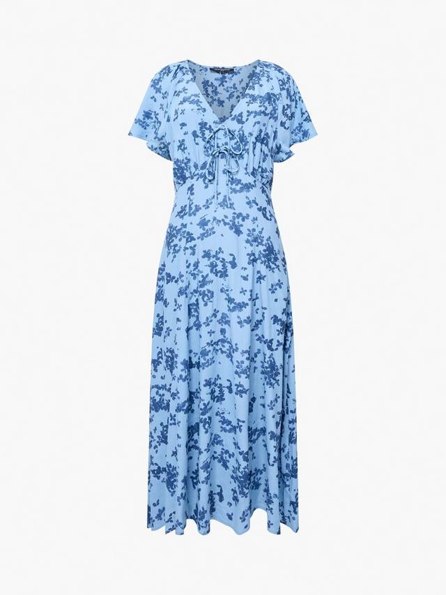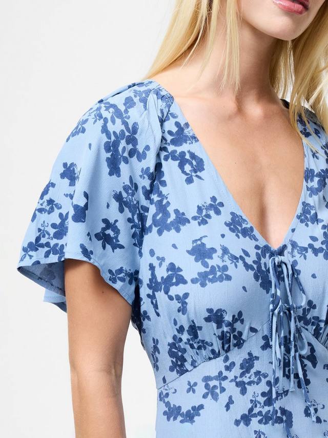 Голубое небо, встречайте свою половинку. Платье миди Isla Lizzie Crepe с V-образным вырезом имеет мягкий V-образный вырез с завязкой, рукава-крылышки и слегка расклешенную юбку, создавая облегающий, воздушный силуэт.