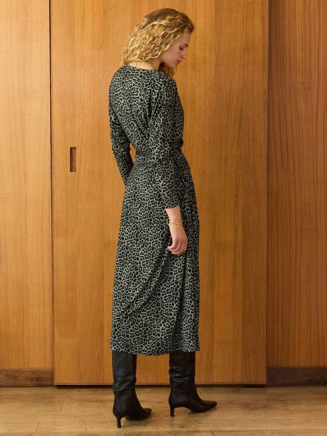 Платья-халаты — мечта для офиса, и платье-миди Kylar ловко избавляет от лишних хлопот при завязывании. Как именно? Элегантный вырез застёгивается на талию и облегает фигуру. А приглушённый леопардовый принт легко сочетается с любой обувью и куртками. Это платье-миди из эластичного трикотажа с рукавами летучая мышь идеально садится по фигуре и расклешивается, легко надевается.
