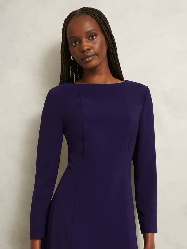 Уверенно проводите день в этом миниатюрном платье миди А-силуэта, которое обеспечит комфорт на работе и длительное время. Вырез лодочкой и длинные рукава придают ему изысканный вид, а застежка-молния обеспечивает удобство в носке.