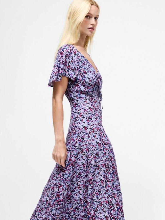 Платье миди Lizzy Crepe с V-образным вырезом станет романтичным дополнением к вашему гардеробу. Это лёгкое платье миди украшено женственным цветочным принтом, короткими рукавами-крылышками и подчеркнутой завышенной талией с изящным бантом.