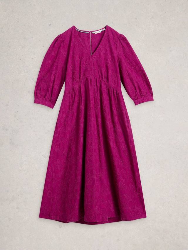 Подарит радость каждому дню благодаря мягкому органическому хлопку, цветочной вышивке и элегантному силуэту ампир. Длина миди и рукава три четверти обеспечат комфорт и очарование на любой случай, позволяя вам с легкостью выразить свой уникальный стиль.