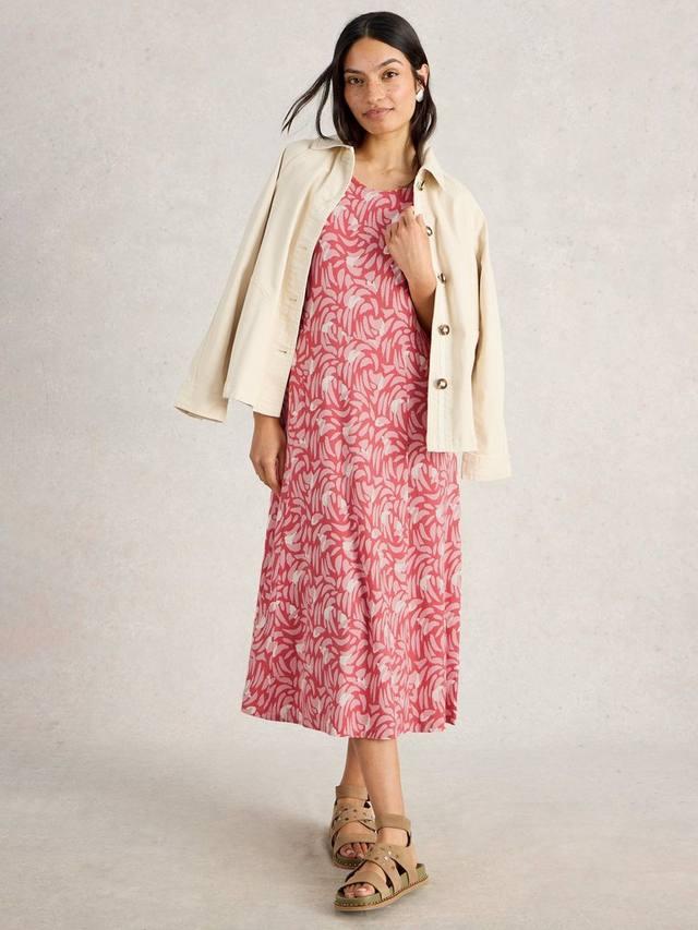 Летний must-have от White Stuff: в этом платье миди с рукавами три четверти и круглым вырезом всё просто розовое. Свободное, но в то же время шикарное.