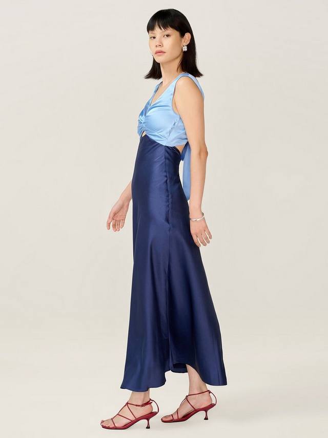 Maggy — смелое и современное платье миди с изящными деталями. Спереди скрученный вырез перекликается с вырезом на спине. Это великолепное платье с атласным эффектом дополнено роскошным поясом-кушаком и двухцветным эффектом, что добавляет ему изюминку.