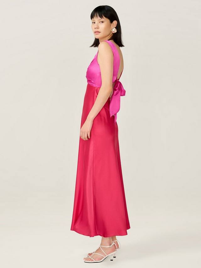 Maggy — смелое и современное платье миди с изящными деталями. Спереди скрученный вырез перекликается с вырезом на спине. Это великолепное платье с атласным эффектом дополнено роскошным поясом-кушаком и двухцветным эффектом, что добавляет ему изюминку.