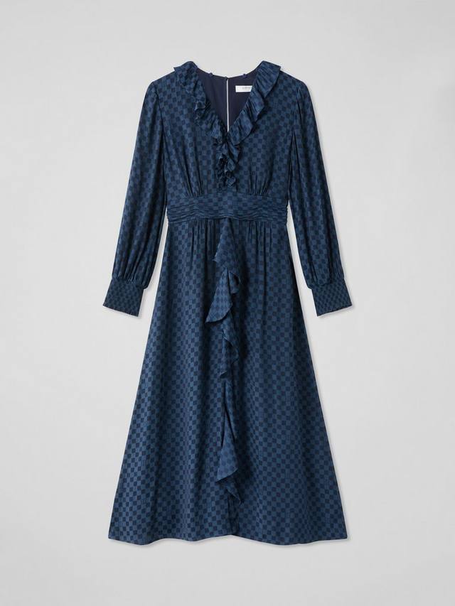 Платье Adriana Petite с рассеченным вырезом украшено эксклюзивным фирменным принтом с логотипом в элегантных оттенках. Это женское платье миди из струящейся ткани отличается рюшами на горловине, V-образным вырезом и эффектными рукавами-блузонами. Водопадная оборка создает эффектную динамику. Идеально подходит для элегантных повседневных случаев — сочетайте с элегантными каблуками для ужина или с изысканными балетками и строгим жакетом для торжественных дневных мероприятий.