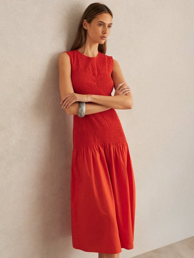 Это миниатюрное платье миди от Reiss с заниженной талией, облегающее по лифу и спускающееся к А-силуэту, выполнено из самых струящихся тканей. Этот потрясающий силуэт без рукавов с круглым вырезом можно носить как приподнятым, так и приспущенным.