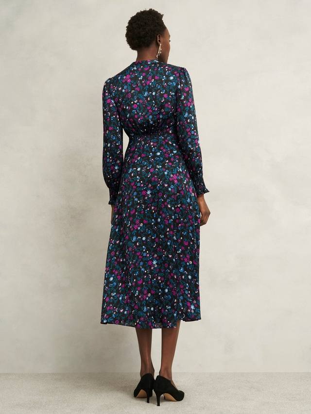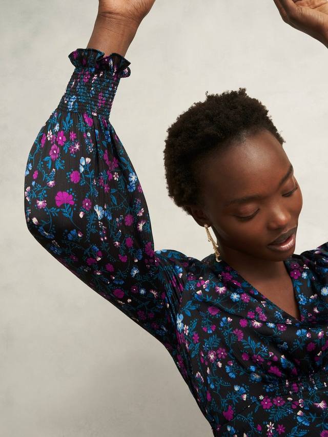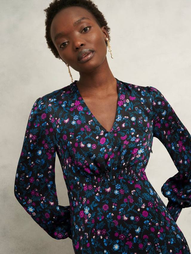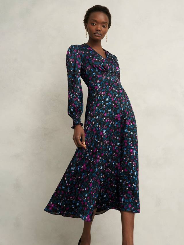 Зимние цветы украшают платье миди Isabella с привлекательными сборками на талии и манжетах.