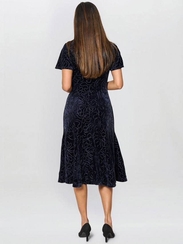 Шикарное, изысканное и стильное. Бархатное платье миди Ray с привлекающим внимание абстрактным узором, квадратным вырезом и короткими рукавами, которые придают ему мягкость и женственность. Идеально подходит для коктейльных вечеринок, ужинов или зимних свадеб, это платье привносит непреходящее очарование в современный облик.