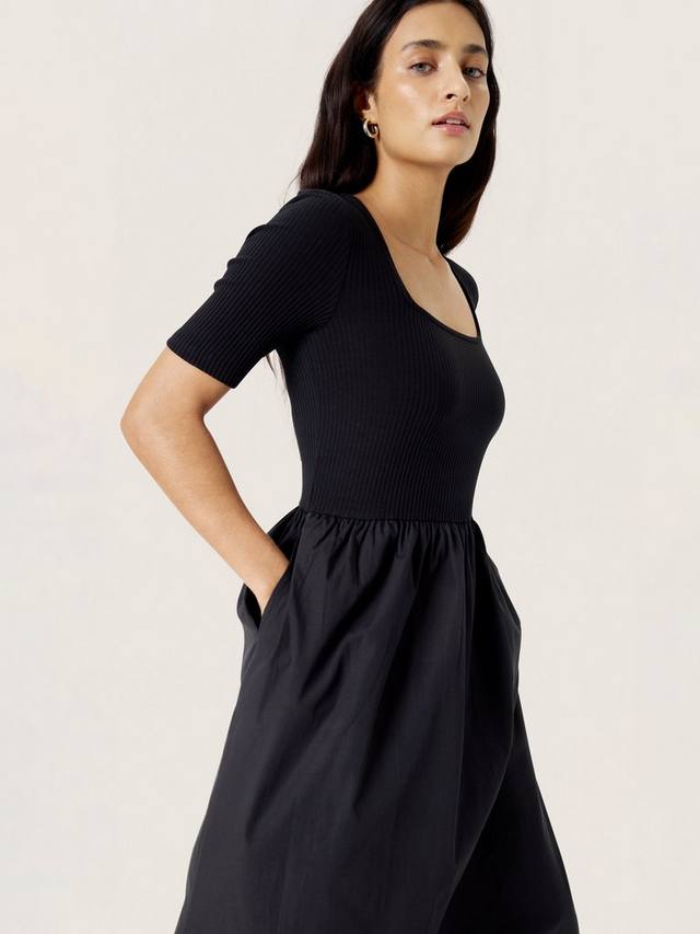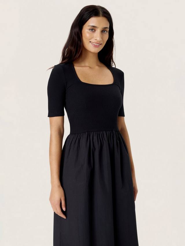 Платье миди с короткими рукавами от Soaked In Luxury — мягкая хлопковая ткань не сковывает движений, а квадратный вырез и свободный А-образный крой сделают каждый день комфортным.