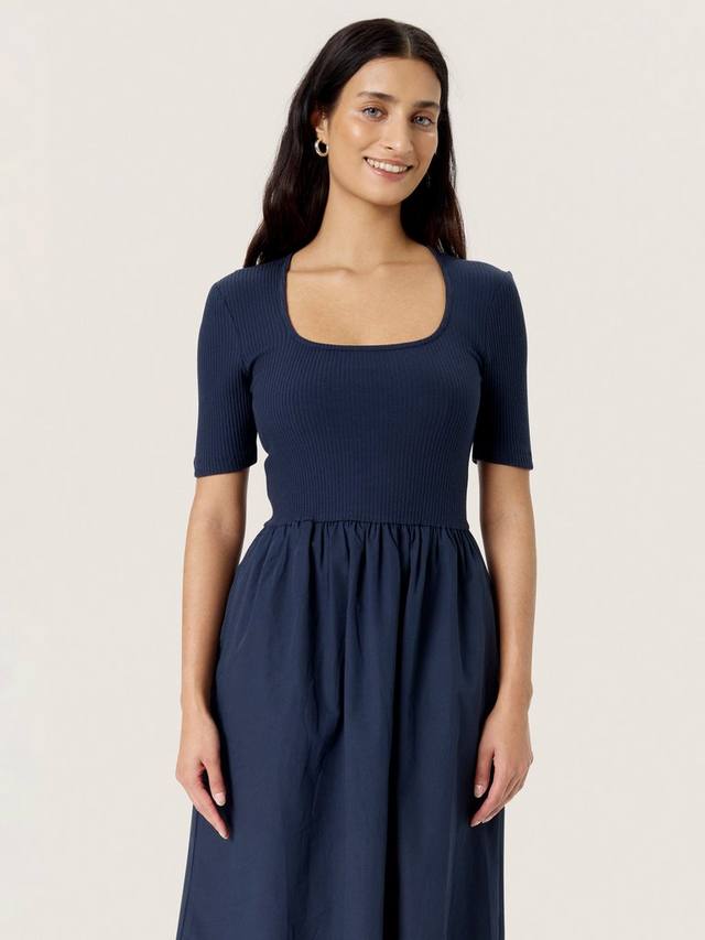 Платье миди с короткими рукавами от Soaked In Luxury — мягкая хлопковая ткань не сковывает движений, а квадратный вырез и свободный А-образный крой сделают каждый день комфортным.